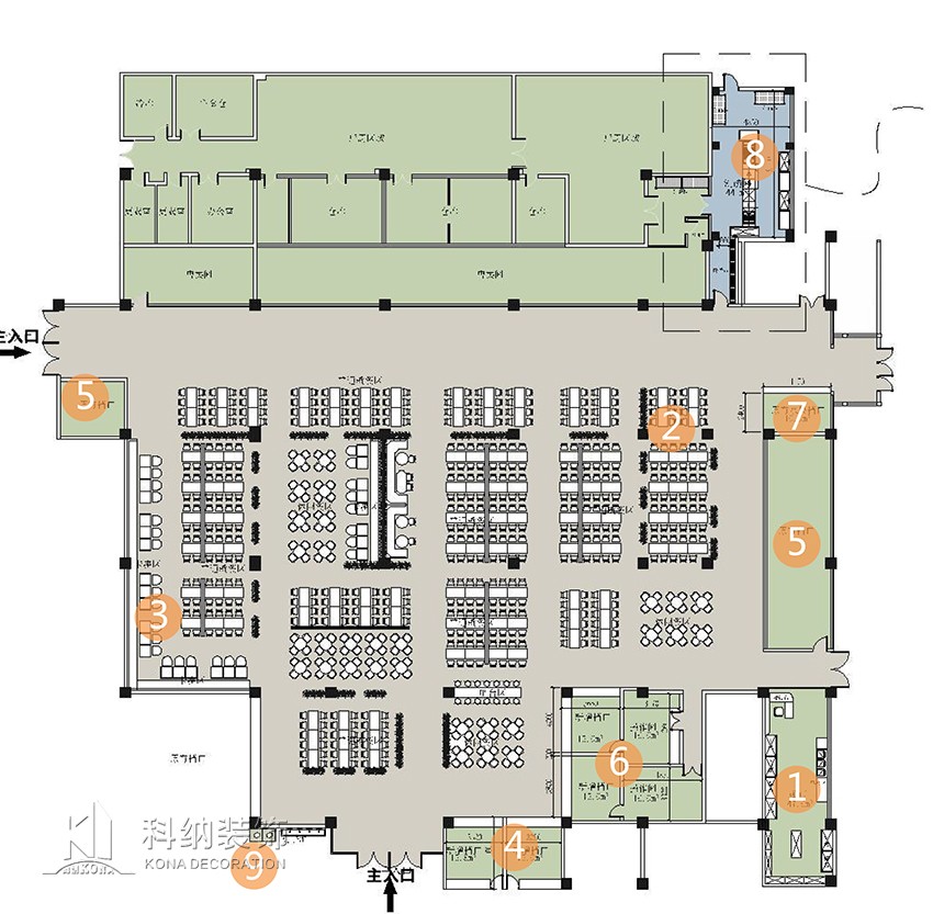 設(shè)計(jì)理念:設(shè)計(jì)師圍繞著“開(kāi)放、包容、創(chuàng)新”的設(shè)計(jì)思路展開(kāi),整體風(fēng)格簡(jiǎn)約穩(wěn)重、優(yōu)雅大方、東西方文化在這里相互交集融合、共生。整體格局設(shè)計(jì)沿用東方的古典美學(xué),用現(xiàn)代的裝飾語(yǔ)言營(yíng)造出一個(gè)開(kāi)放,包容的精神空間。設(shè)計(jì)師對(duì)于細(xì)節(jié)的考究更是細(xì)致入微,強(qiáng)調(diào)東方韻味與空間的感受,線條的運(yùn)用更是畫(huà)龍點(diǎn)睛,形式上的變化細(xì)膩?zhàn)匀唬牧仙夏静呐c石材的相互襯托,以及空間巧妙的留白,引人入勝。整體以暖色調(diào)為主色的餐飲空間,打造“多樣化”空間。